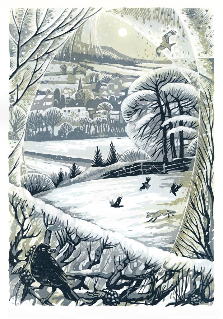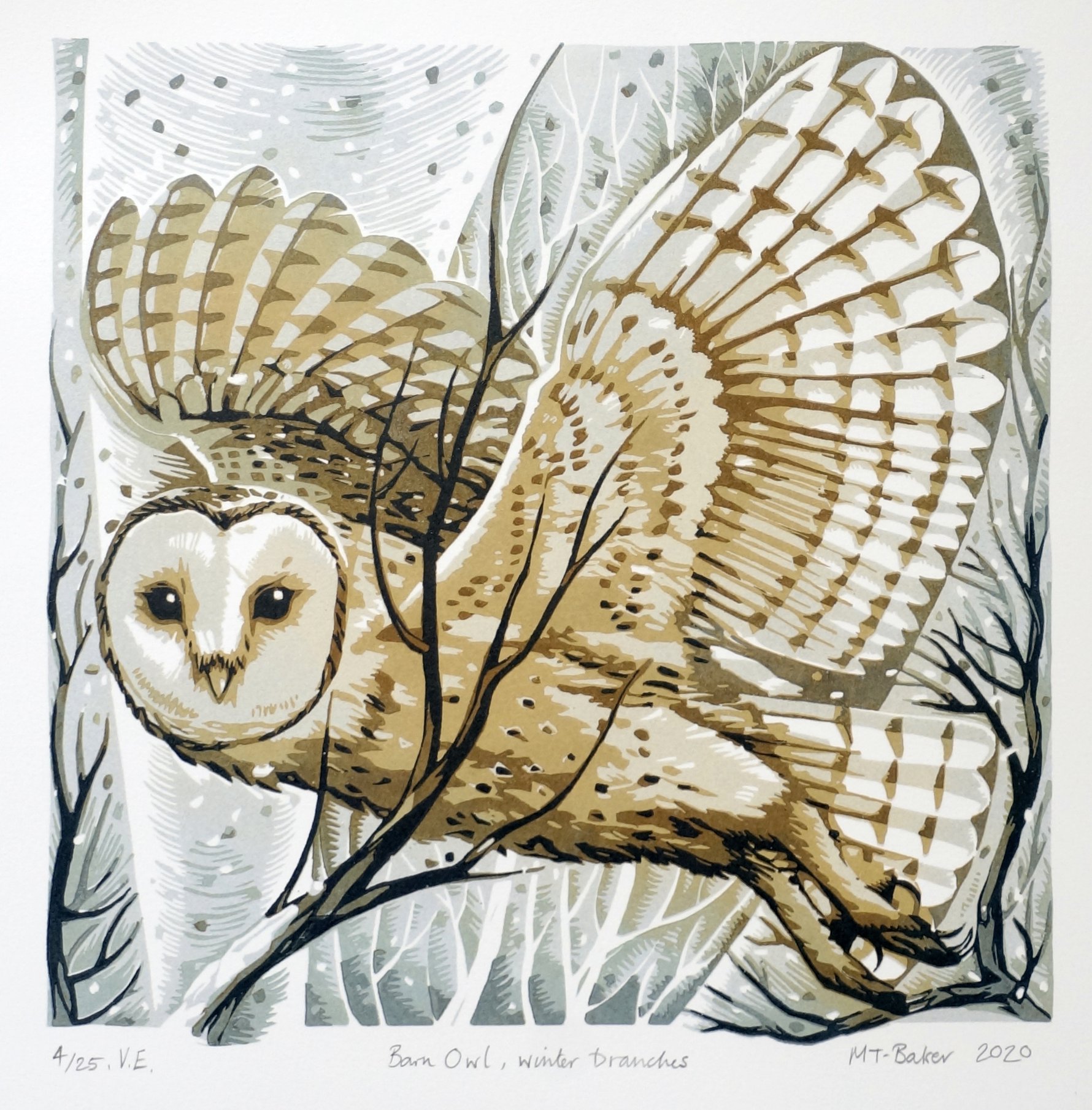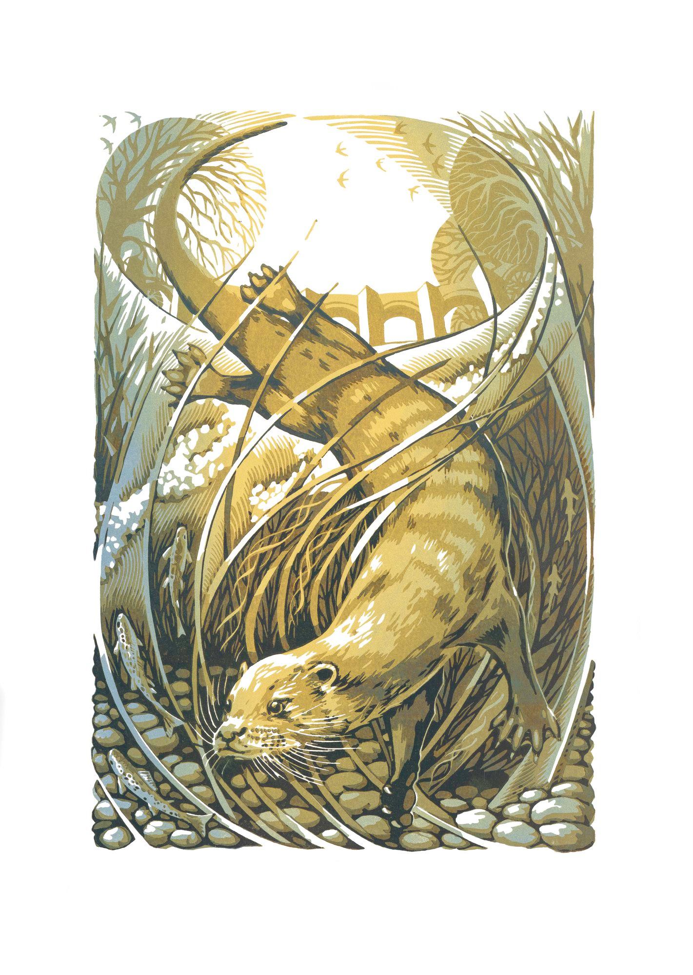 “My current linocuts are mainly of Welsh wildlife in the local landscape. I’m not a great stalker/twitcher and observer of wildlife but I do see quite a bit during walks and wandering. I wouldn’t try to portray anything I haven’t seen but I have used photographs from friends who live locally, who are much better at observing and photographing than me. I imagine I am THE animal in THAT place.