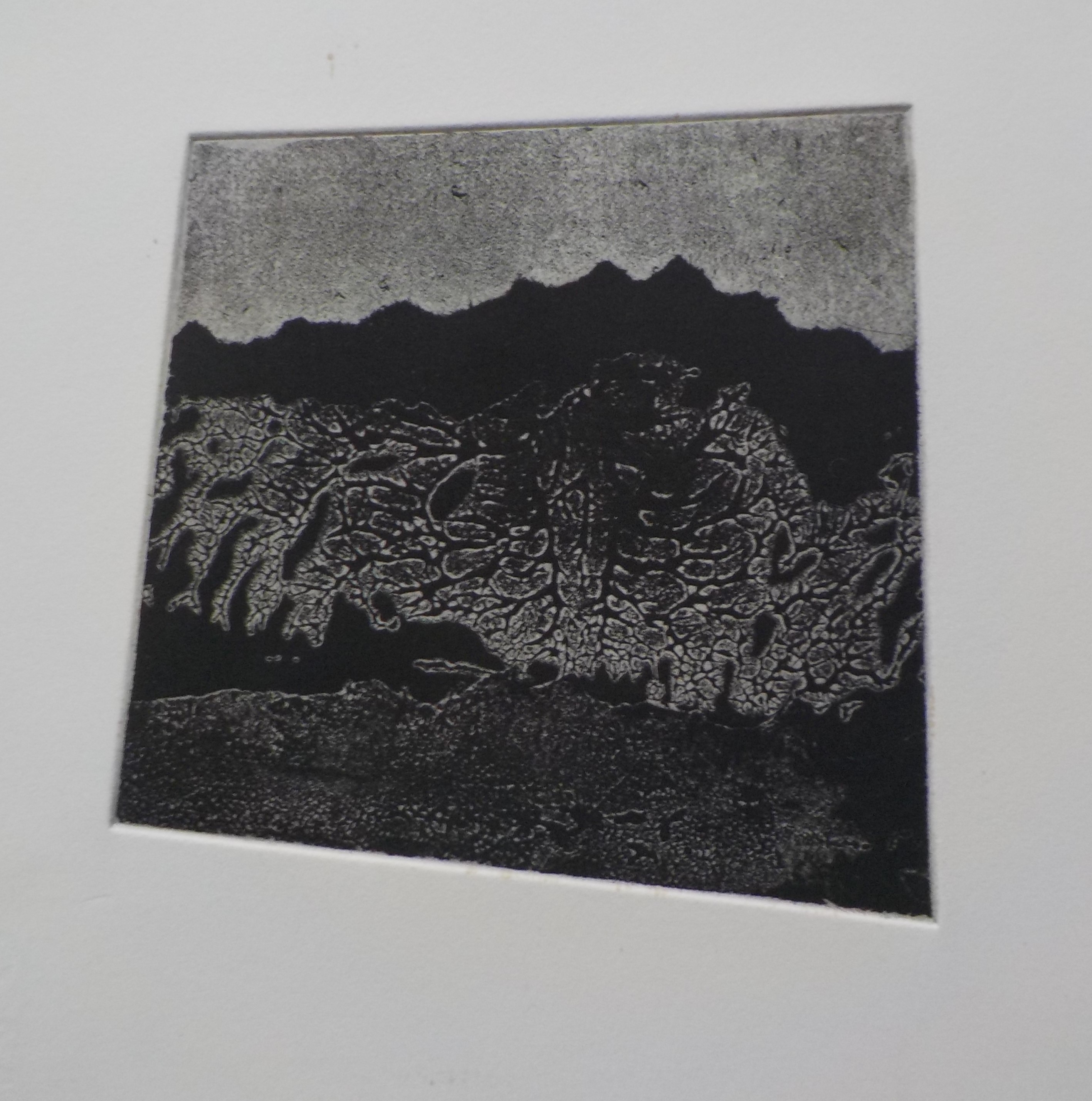 Two Collagraphs by Trevor Lofthouse, the third photo is of one of Trevor’s actual collagraph boards.