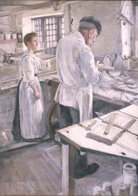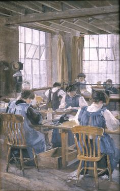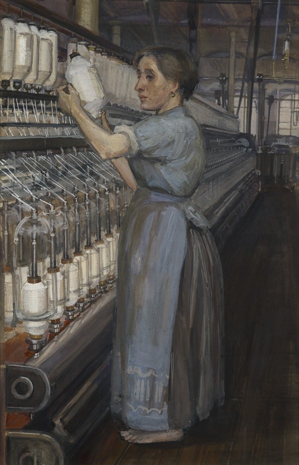 In 1907, travelling across Britain, she made realistic paintings for the Working Women In Britain project displaying the monotonous work done by women in mills and factories. In Glasgow she wrote about “the almost deafening noise of the machinery and the oppressive heat, the mill was “so hot and airless that I fainted within an hour”.