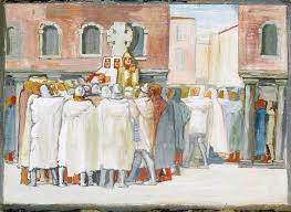 Pankhurst studied at the Manchester School of Art and, in 1902, was awarded the Proctor Travelling Studentship residing in Venice for most of the scholarship. Pankhurst was the only woman in the life class at the Venice Accaddemia. Out on the streets of Venice she made studies and paintings of people in everyday life. Her studies in Venice were cut short when her mother became ill.