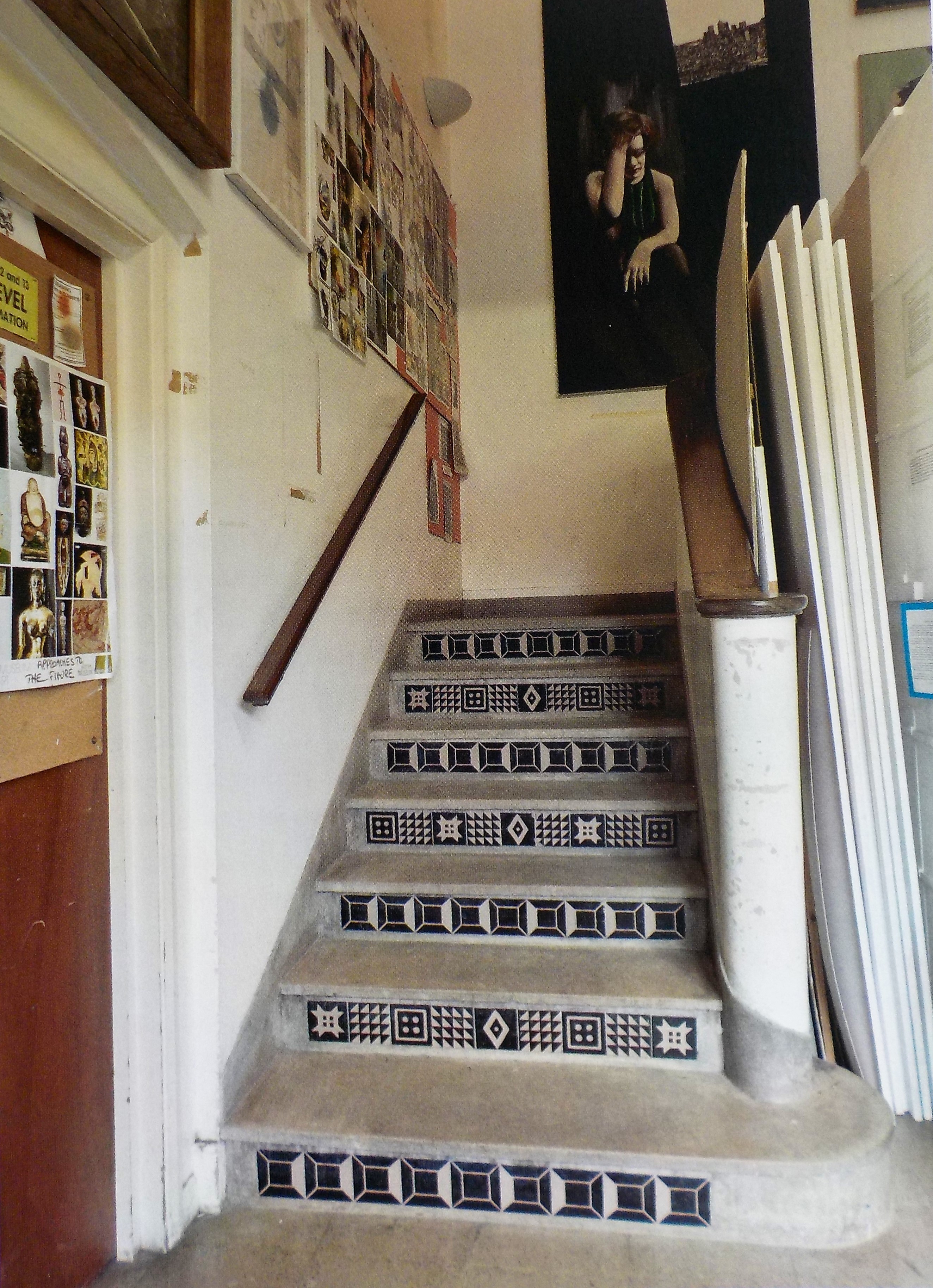 The stairs of the NLCS in the new drawing school, tiles designed by Peggy Angus. The art room 1960’s with desks designed by Peggy. Endpaper and title page for the school magazine 1958-59.