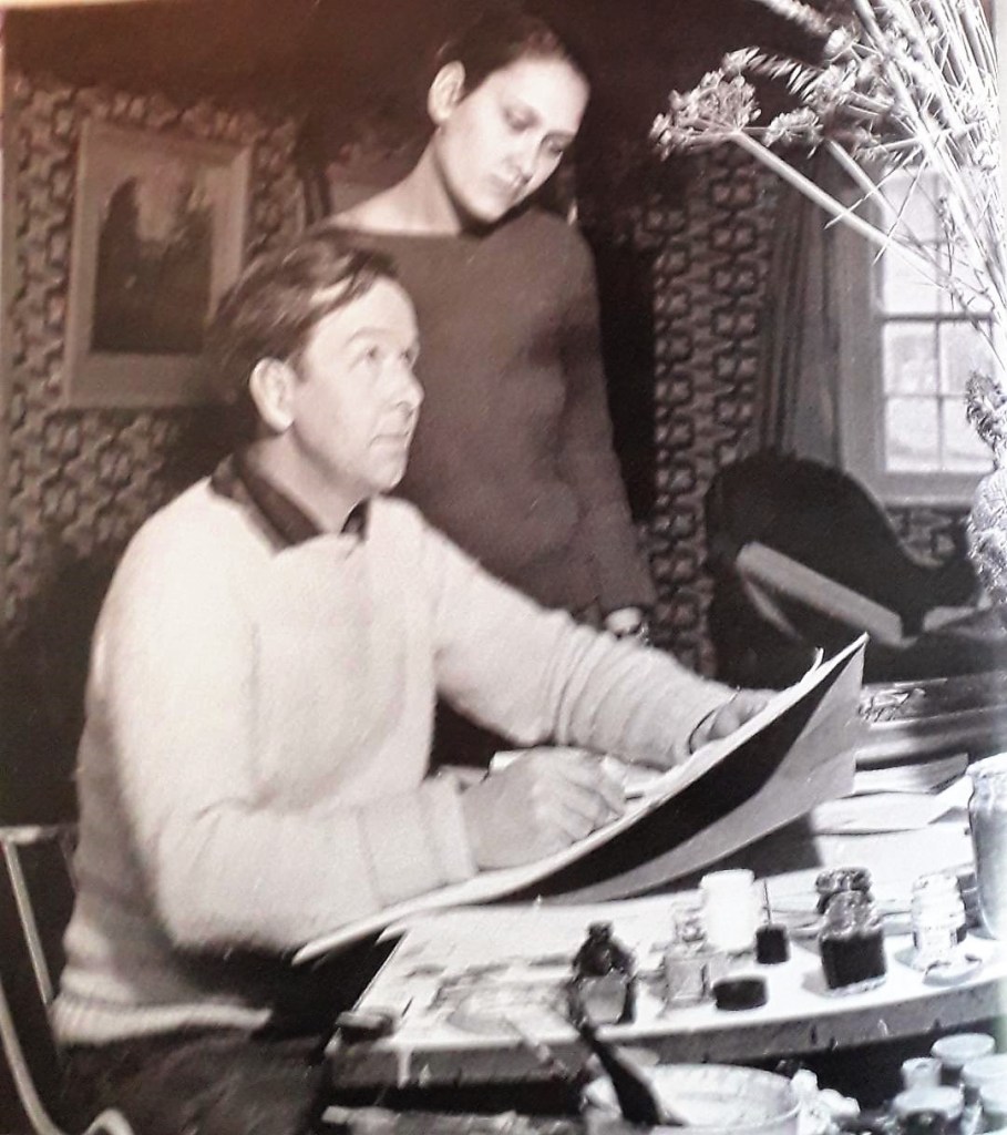 The Horton’s version of a holiday retreat was at Pump Farm, Assington, Suffolk and John Nash stayed with them through August and September 1936, Christine only staying a few days. Assington was close to the Nash’s retreat at Wiston (also known as Wissington). It was here at Pump Farm that Eric Ravilious and his lover Helen Binyon arrived for a week’s stay. This was the first meeting between Nash and Binyon who within a year commenced their ‘affair’.