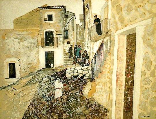 Like John Nash and John Aldridge, Horton was a prolific painter and there are scores of works I could have presented here. Here we have :- Girl in the studio 1947. House on the Seine. Lock Gates The Barn. Blind Workers at a Factory in Birmingham. Farm at Harvest. Haystacks. Portrait of a Private. Woman Ironing. Village in Luberon, France.