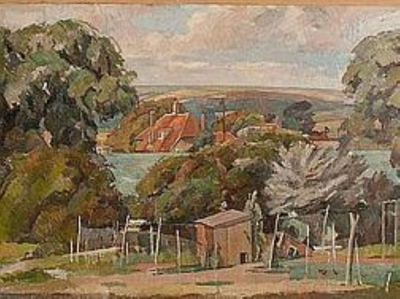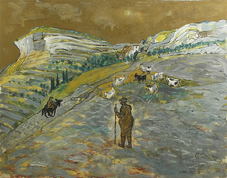 Horton’s interest in landscape painting and familiarity of the countryside around Furlongs, led him, in 1948 to a gamekeeper’s tower on Lord Gage’s estate at Firle, Sussex, John Nash a regular visitor. The tower served as painting studio at the weekends and holidays for the rest of his life. Atter retiring from the Ruskin in 1964 he moved to Lewes teaching a couple of days at the Sir John Cass School, Stepney Green and one day a week at Hastings School of Art.