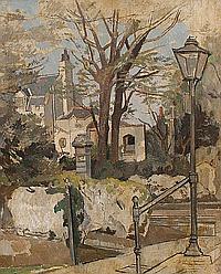 Horton painted many scenes of Dulwich. He and his wife, Lydia lived at 11 Pond Cottages for many years. His neighbours were fellow artists James and Margaret Fitton who lived at 10 Pond Cottages.