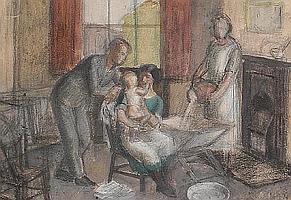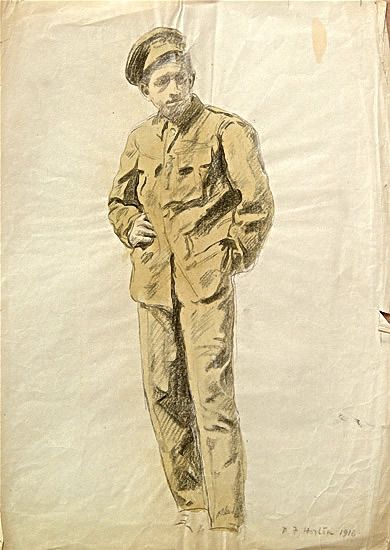 Horton was taken to Edinburgh Hospital for an operation on a large ganglion on his wrist in 1917. During his recuperation he made several drawings of patients and nurses. Artist Edward Arthur Walton saw these drawings and became interested in Horton. Walton was able to get permission to take him into his care and Horton was officially discharged from prison in April 1918. With his health severely weakened Horton stayed with Walton for several months.